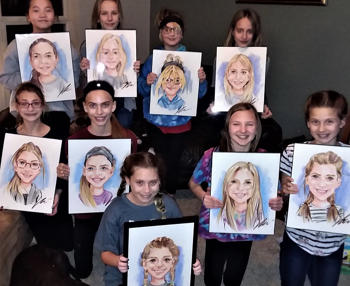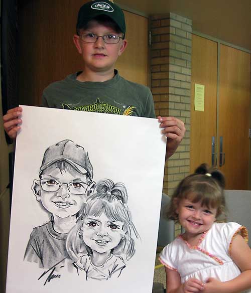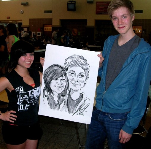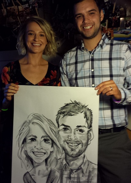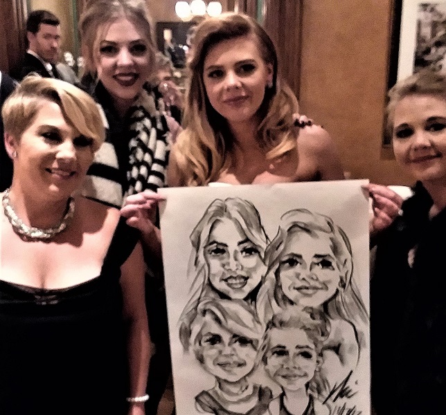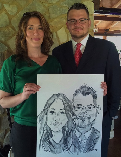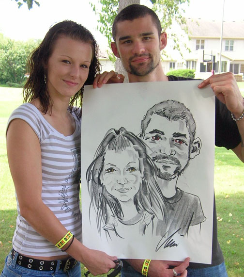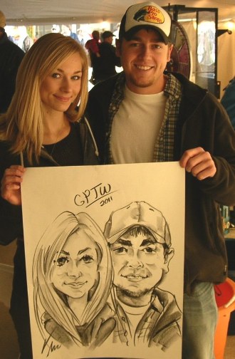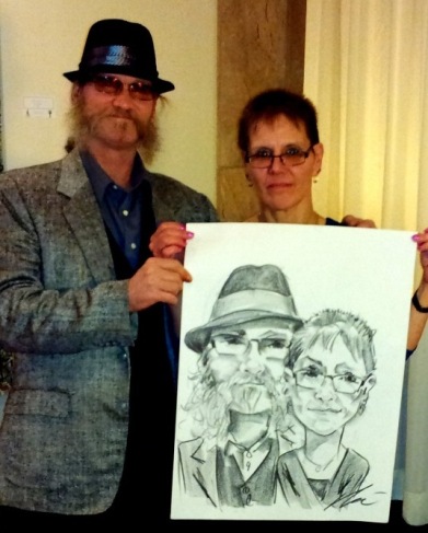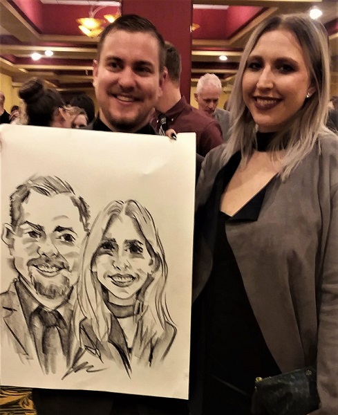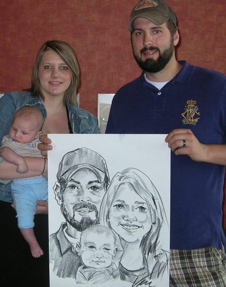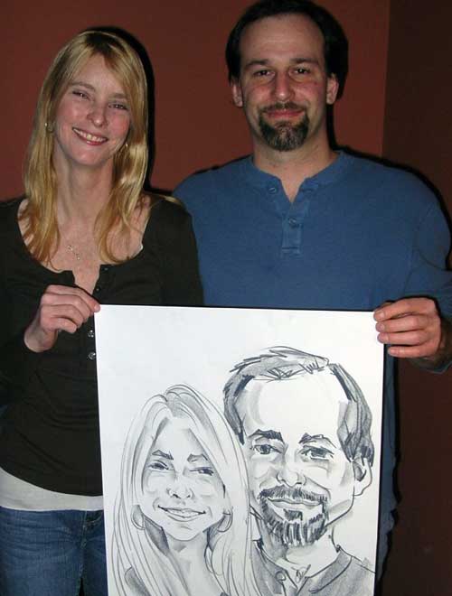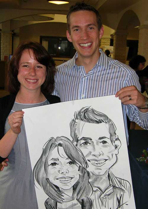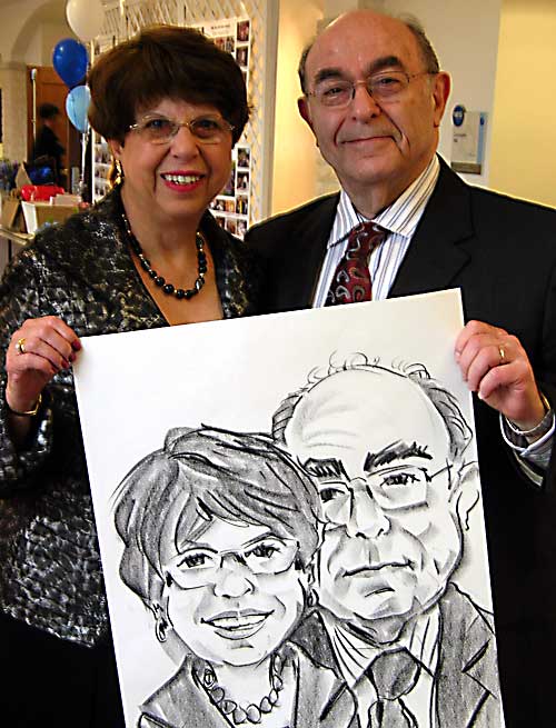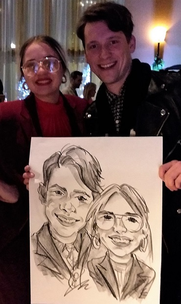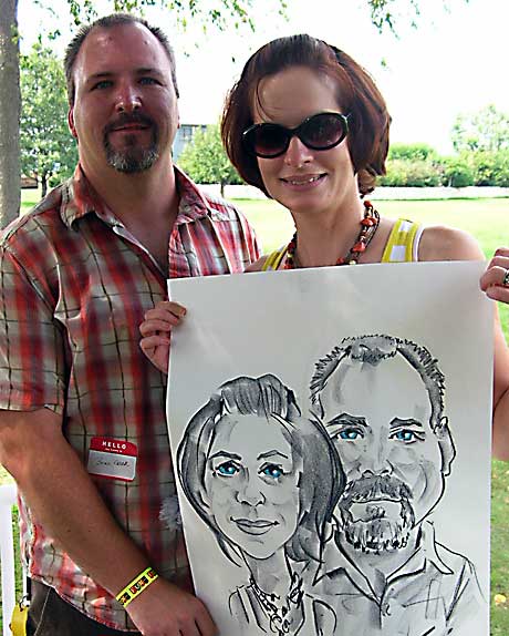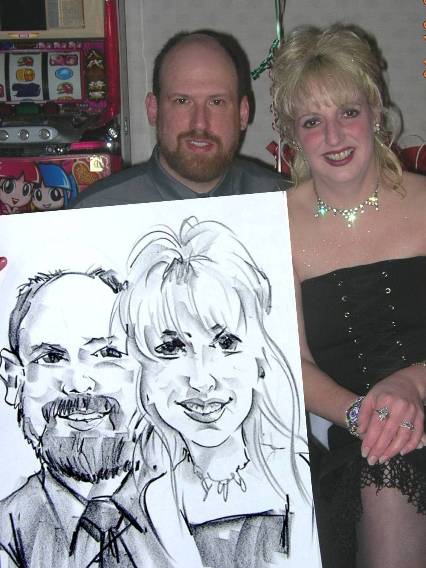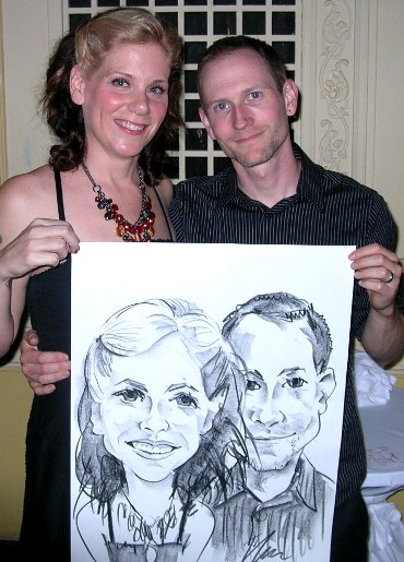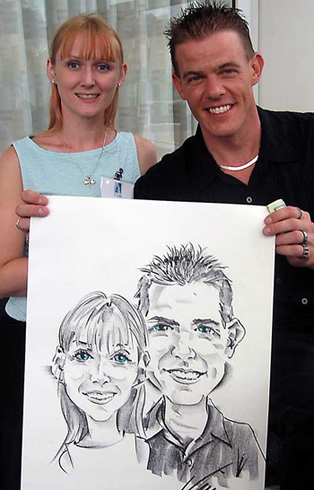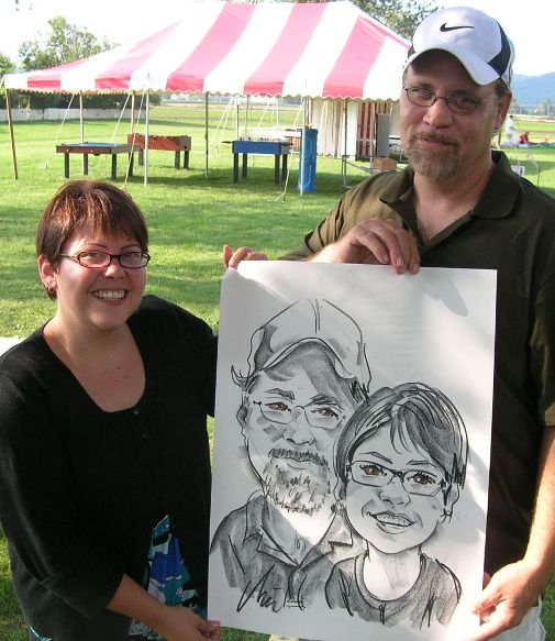 Photos taken at booked events immediately after completing caricatures. Click on a thumbnail to see the full size image, then scroll through the examples - click in the right half of the enlarged image to scroll forward, and the left half to scroll back.